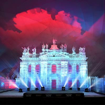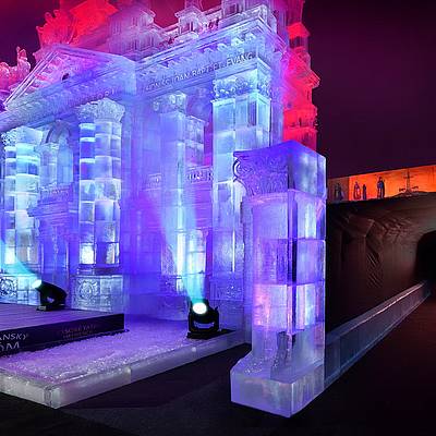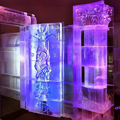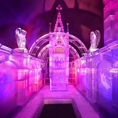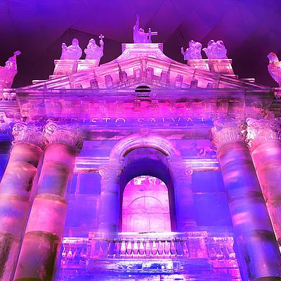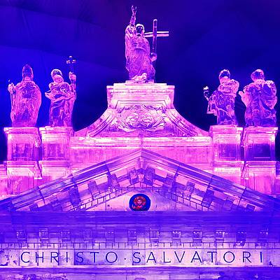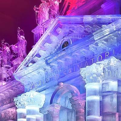 Built from 225 tonnes of ice and 1,800 ice blocks, this year’s masterpiece is inspired by the Basilica of Saint John Lateran in Rome – the main church of the city and the official seat of the Pope as the Bishop of Rome.