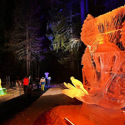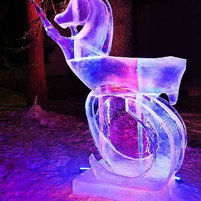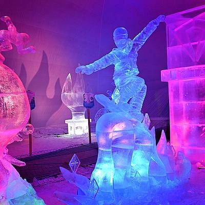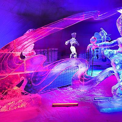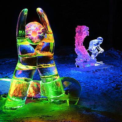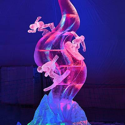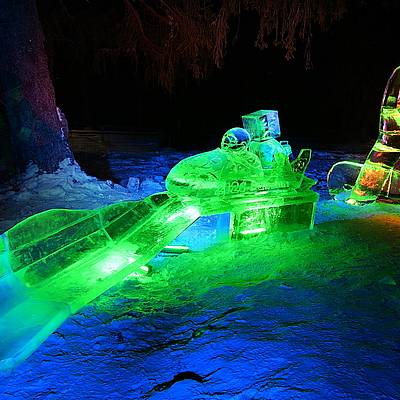Srdečně vás zveme do areálu ledové krásy vychutnat si nezapomenutelné ledové umění, které vyniká v speciálním barevném nasvícení.