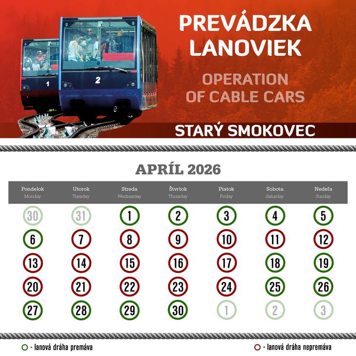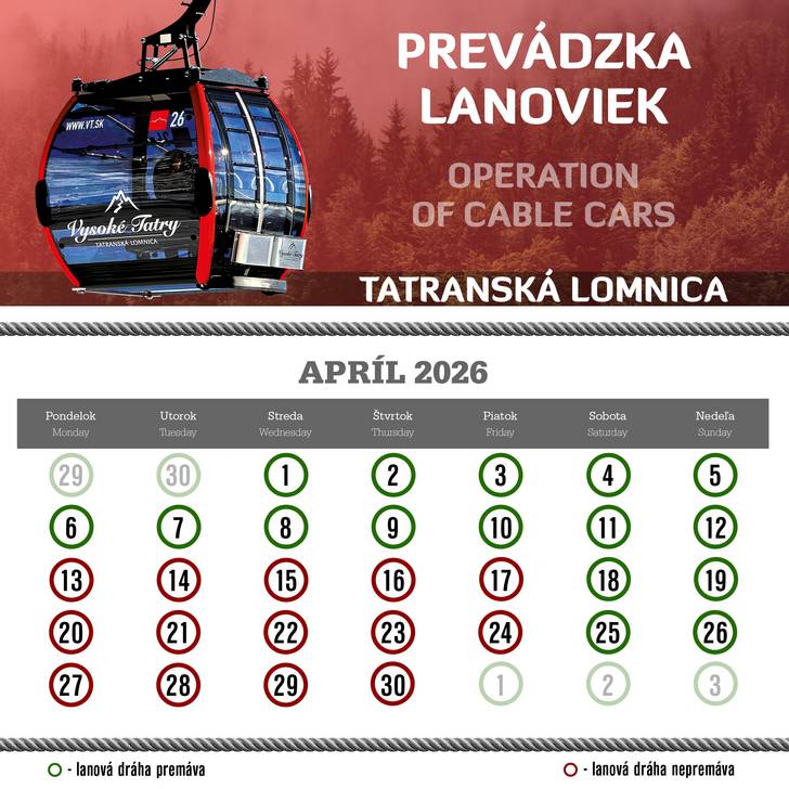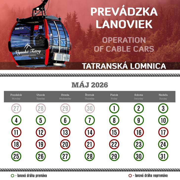 A kötélpályák rendszeres műszaki karbantartása okból az üzemidő a következő képen módosul: